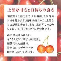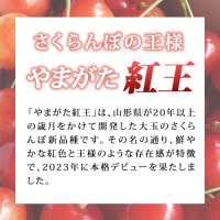 商品説明 ■ やまがた紅王 「やまがた紅王」は、山形県が20年以上の歳月をかけて開発した大玉のさくらんぼ新品種です。その名の通り、鮮やかな紅色と王様のような存在感が特徴で、2023年に本格デビューを果たしました。