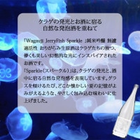 「Wagauji JerryFish Sparkle 」純米吟醸 無濾過活性 おりがらみ生原酒はクラゲたちの放つ、儚くも美しい幻想的な光にインスパイアされたお酒です。「Sparkle(スパークル)」は、クラゲの発光と、酒中に宿る自然な発泡感を表現しています。グラスを傾けるたび、どこか懐かしい夏の記憶がよみがえるような、やさしく包み込む味わいに仕上げました。