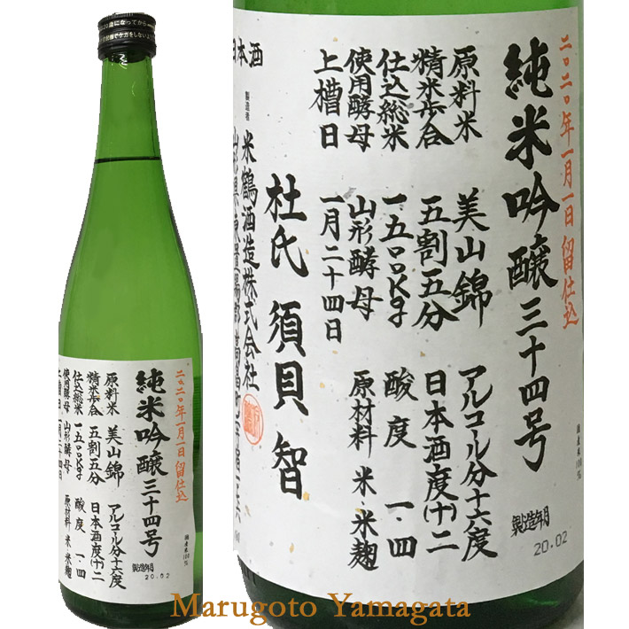 米鶴 吟醸34号仕込み 720ml 化粧箱なし 日本酒 山形 地酒