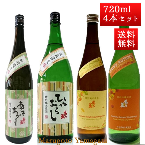 日本酒 飲み比べセット あら玉 秋酒 720ml 4本 セットおつまみつき 送料無料 山形 和田酒造 河北町