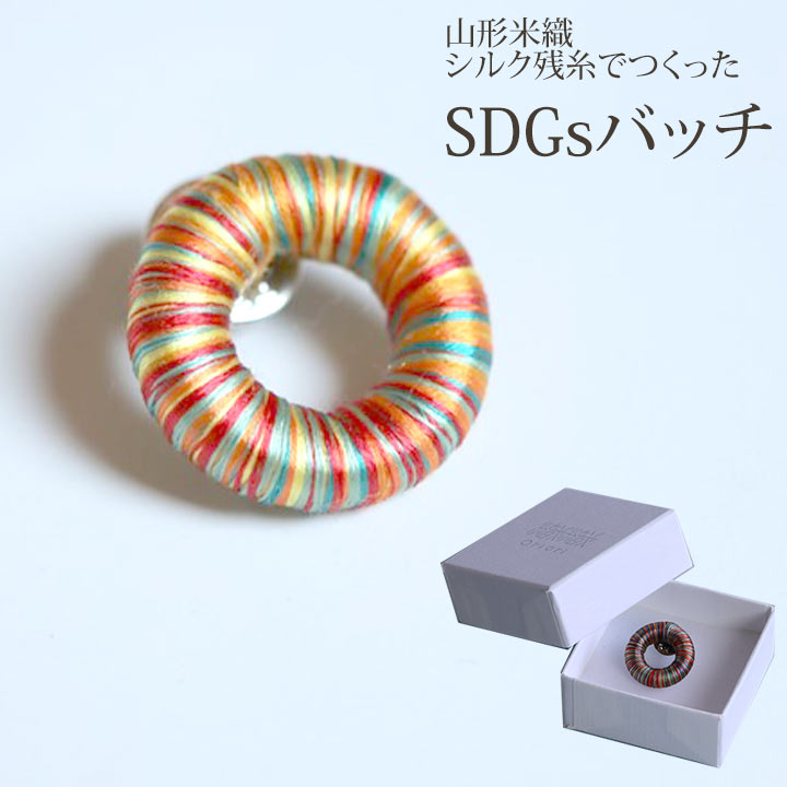 SDGsバッチ Oriori シルク残糸をつかったブローチ 化粧箱入れ