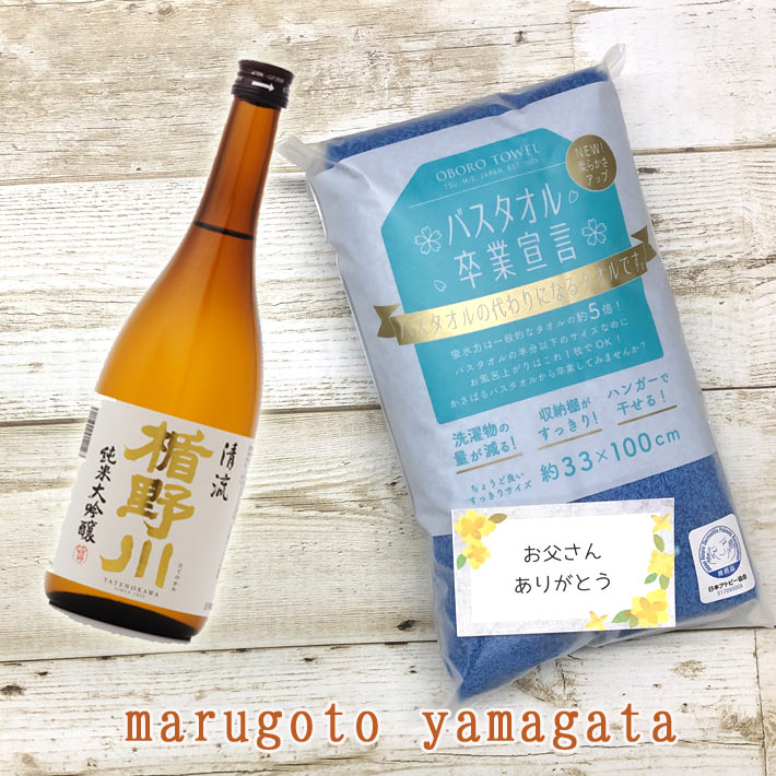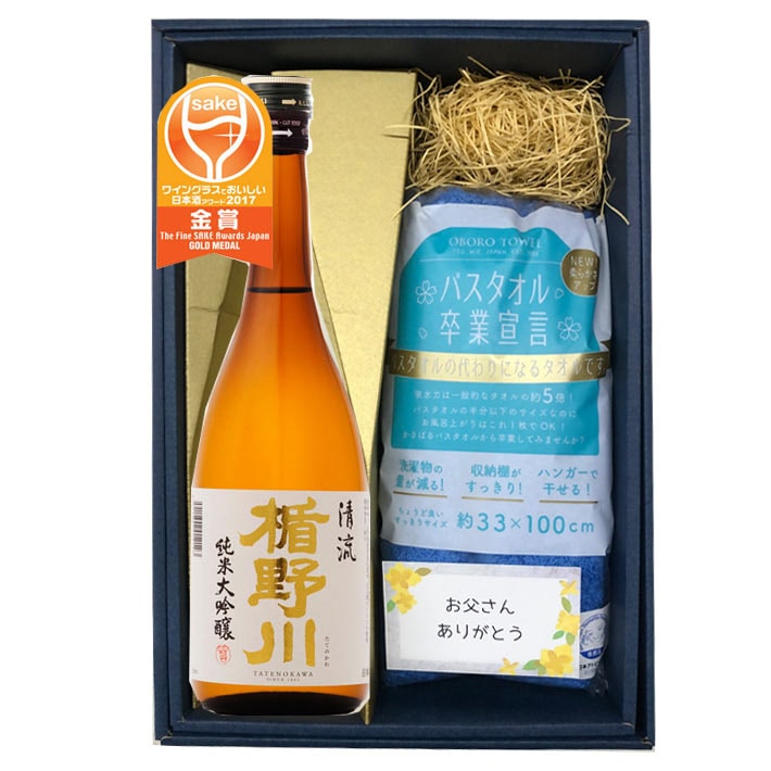 ※ 必ずご確認くださいませ ※ ■ セット内容 日本酒好きのお父さんにはとっておきの山形の美酒とタオルを! いつも家族のために頑張って働いている全国のお父様方へ、 ゆったりと過ごしてほしい。 日ごろの感謝をこめて贈ります。 ■日本酒 楯野川 純米大吟醸 清流720ml ■バスタオル卒業宣言 バスタオルの代わりになるタオルです。吸水力は一般的なタオルの約5倍!! バスタオルの半分以下のサイズなのにお風呂上りはこれ1枚でOK!! かさばるバスタオルから卒業してみませんか?? ※ サイズ 約33x100cm ※ 日本アトピー協会推薦品 |