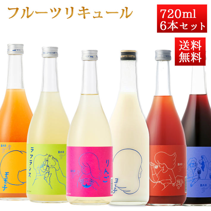 楯の川 BARヨー子 フルーツ リキュール 720ml 6本セット 送料無料(ラフランス・ヨーグルト・ももさくらんぼ・ヤマソービニオン・りんご・すもも)楯野川 山形県酒田市