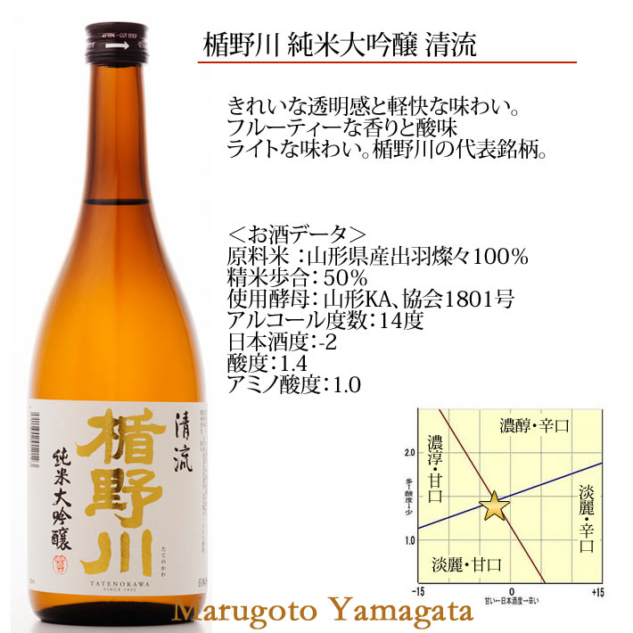 日本酒 楯野川 飲み比べ セット 純米大吟醸 清流 と 渓流1800ml 2本セット 化粧箱入 山形 地酒