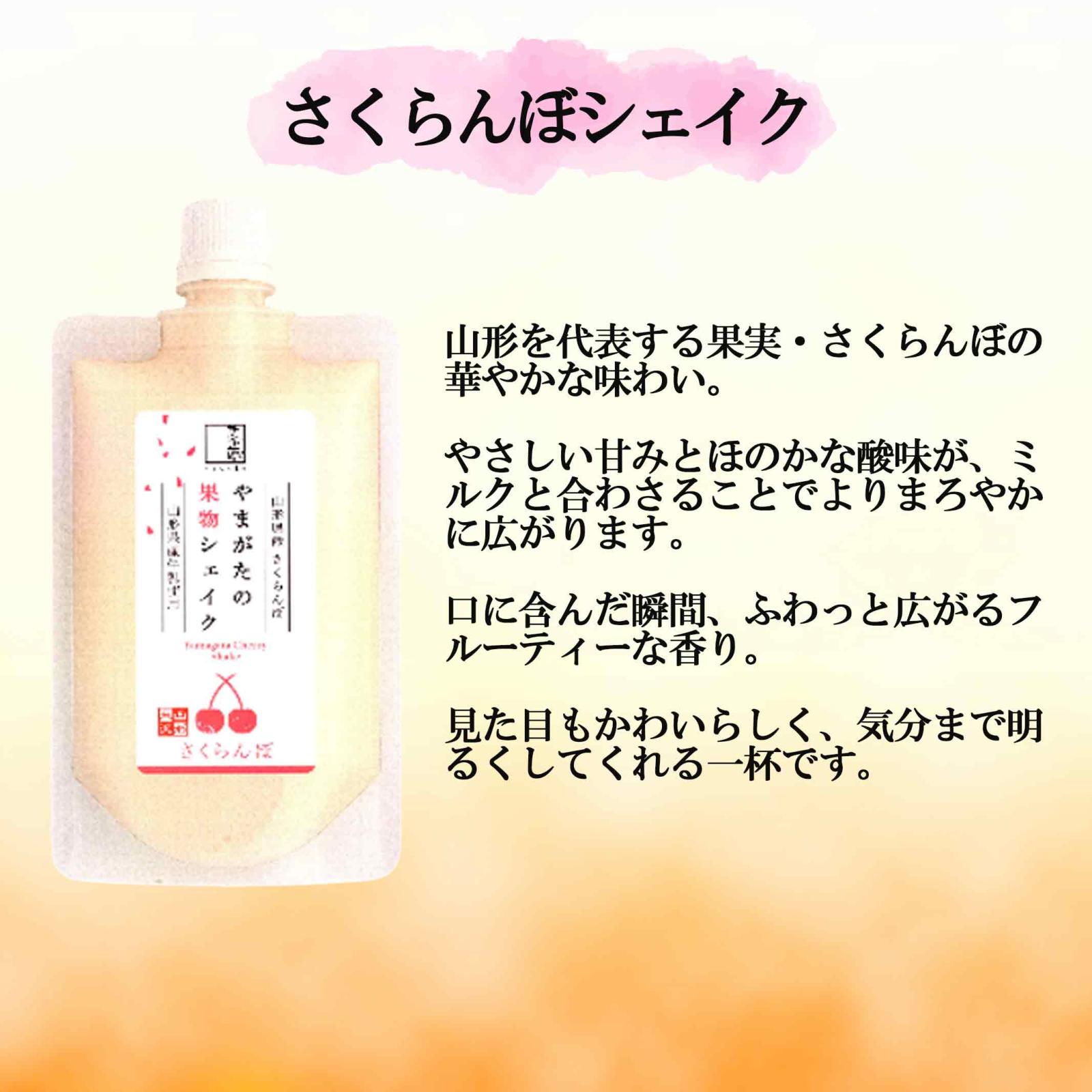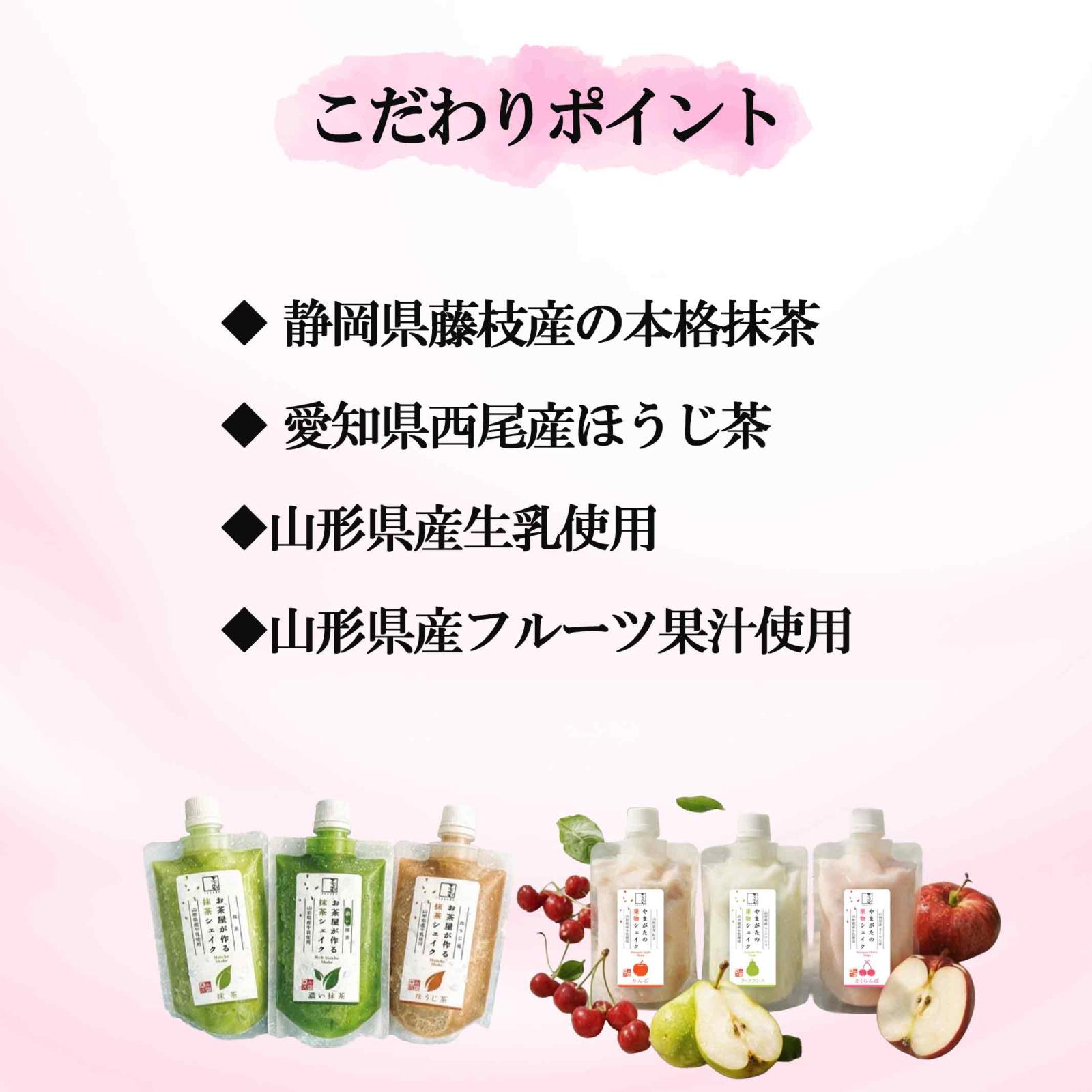 商品説明 ■ コンセプト 素材にこだわり抜いた、 “ちょっと特別なシェイク”ができました。 抹茶の深み、ほうじ茶の香ばしさ。 そして、山形の果実のやさしい甘み。 “和”と“フルーツ”の美味しさを一度に楽しめる、欲張りな飲み比べセットです。 どれにするか迷ったらこれ。 人気の味をまるごと1セットに凝縮しています。 パウチタイプなのでいつでもどこでも手軽にワンハンドで楽しめるシェイクです。 ■ セット内容 内容量:120ml×6個 さくらんぼx1 ラ・フランスx1 りんごx1 抹茶x1 濃い抹茶x1 ほうじ茶x1 ■ 茶蔵のさくらんぼシェイク 【種類別】 ラクトアイス 無脂肪固形分6. 5% 乳脂肪分6.0% 【原材料名】 牛乳(生乳 (山形県産))、さくらんぼ (山形県産)、 水飴、乳製品、砂糖、リキュール、レモン果汁/トレハロース 乳化剤、安定剤(増粘多糖類)、ビタミンC、(一部に乳成分 を含む) 【栄養成分表示 100g当たり】 エネルギー 131kcal たんぱく質 5. 5g 脂質 2.6g 炭水化物16. 4g 食塩相当量 0. 1g ■ 茶蔵のラ・フランスシェイク 【種類別】 水 菓 【原材料名】 ラ・フランス (山形県産)、牛乳(生乳(山形県産) 、水飴、砂糖、イヌリン、全糖ぶどう糖、砂糖加工品、レモン 果汁/トレハロース、サイクロテキストリン、乳化剤、安定剤( 増粘多糖類、ビタミンC、香料、(一部に乳成分を含む) 【栄養成分表示 100g当たり】 エネルギー 109kcal たんぱく質 0. 9g 脂質 0. 9g 炭水化物 24. 18 食塩相当量 0.0g ■ 茶蔵の紅玉りんごシェイク 【種類別】 ラクトアイス 無脂肪固形分2.5% 乳脂肪分1.5% 【原材料名】 紅玉りんご(山形県産)、牛乳(生乳(山形県産)) 乳製品、水飴、砂糖、レモン果汁/トレハロース、乳化剤、安定剤(増粘多糖類)、ビタミンC、(一部に乳成分・大豆・りんごを含む) 【栄養成分表示 100g当たり】 エネルギー 98kcal たんぱく質 1.6g 脂質 1. 2g 炭水化物 19. 48g 食塩相当量 0.0g ■ 茶蔵の抹茶シェイク 【種類別】 アイスミルク 無脂肪固形分7.5% 乳脂肪分6.0% 【原材料名】 牛乳(生乳(山形県産)、水飴、乳製品、砂糖、抹 茶(静岡県産)/トレハロース、乳化剤、安定剤(増粘多糖類)、(一部に乳成分・大豆を含む) 【栄養成分表示 100g当たり】 エネルギー 133kcal たんぱく質 5. 4g 脂質 3. 3g 炭水化物 16. 9g 食塩相当量 0. 1g ■ 茶蔵の濃い抹茶シェイク 【種類別】 アイスミルク 無脂肪固形分7.5% 乳脂肪分6.0% 【原材料名】 牛乳(生乳(山形県産)、水飴、乳製品,砂糖、抹 茶(静岡県産)/トレハロース、乳化剤、安定剤(増粘多糖類)、 (一部に乳成分・大豆を含む) 【栄養成分表示 100g当たり】 エネルギー 133kcal たんぱく質 5. 4g 脂質 3. 3g 炭水化物 16. 9g 食塩相当量 0. 1g ■ 茶蔵のほうじ茶シェイク 【種類別】 アイスミルク 無脂肪固形分6.5% 乳脂肪分7.5% 【原材料名】 牛乳(生乳(山形県産))、水飴、乳製品、砂糖、ほ うじ茶(緑茶(国産))/トレハロース、乳化剤、安定剤(増粘 多糖類)、(一部に乳成分を含む) 【栄養成分表示 100g当たり】 エネルギー 125kcal たんぱく質 5. 5g 脂質 2. 9g 炭水化物 15. 4g 食塩相当量 0. 1g ■ 保存方法 冷凍便でお届け -18℃以下で保存して下さい。 ■ 販売者 株式会社桑名園本店 山形県米沢市中田町760 TEL0238-37-3330 ■ お召し上がり方 ・手でもんで、にぎれるやわらかさが食べごろです。 ・ムリに吸わず、やわらかくしてお召上がりください。 ・一度溶けたものは再冷凍しないでください。(品質が変わります) |